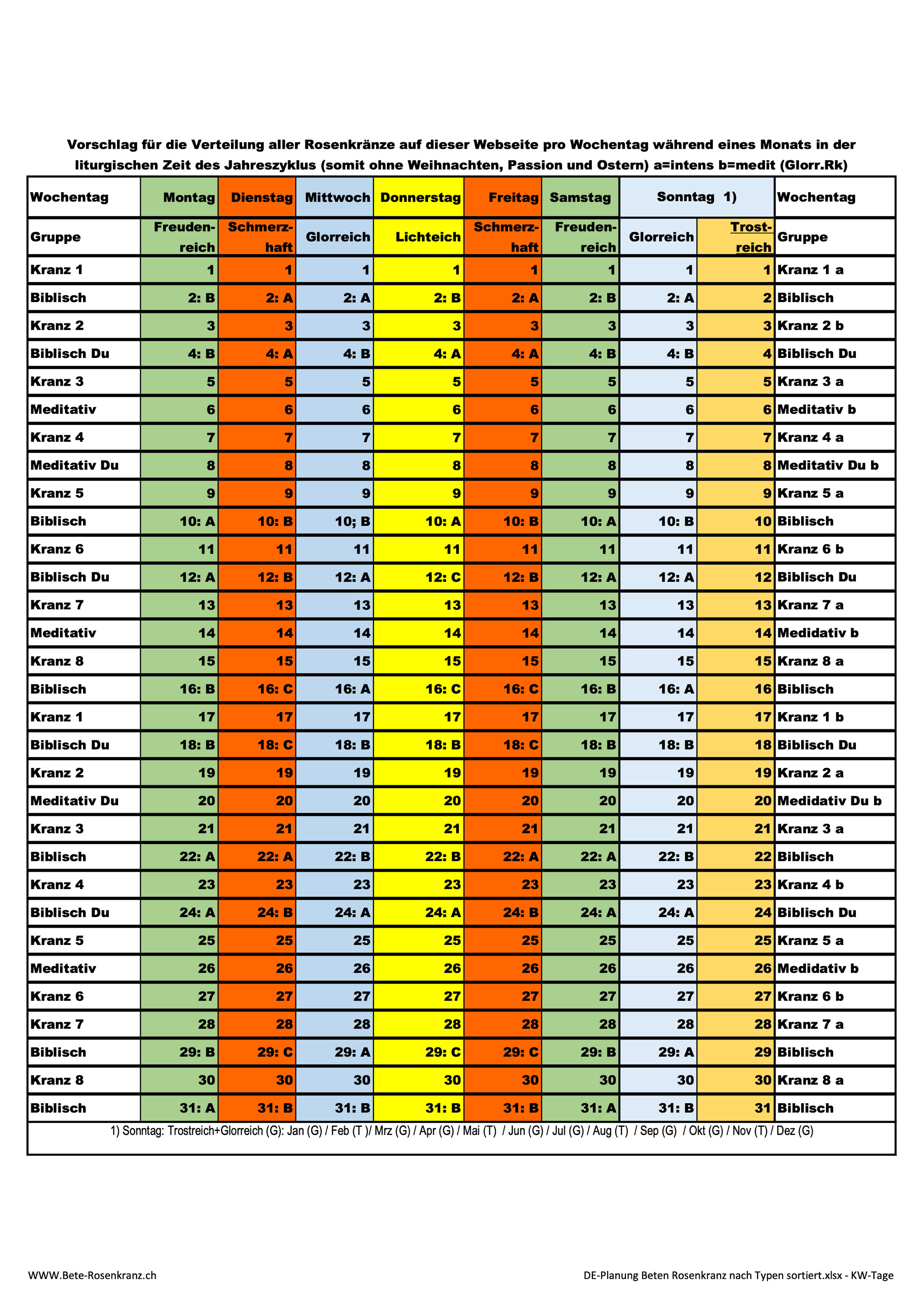 Versionen mit einleitender Betrachtung je Rosenkranz